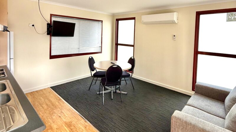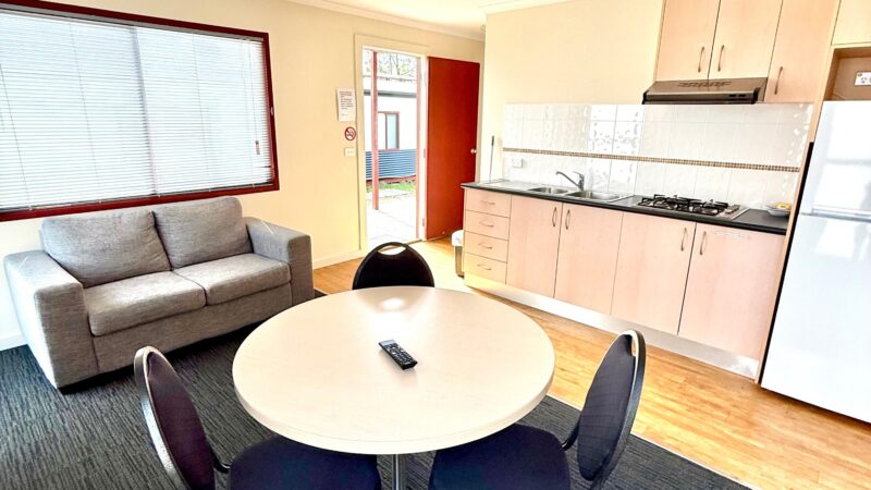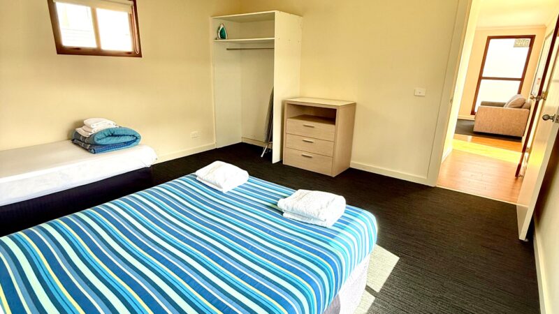 One bedroom cooking cabins (stovetop only) 1 double bed and one single bed in bedroom. Bathroom is separate not an ensuite